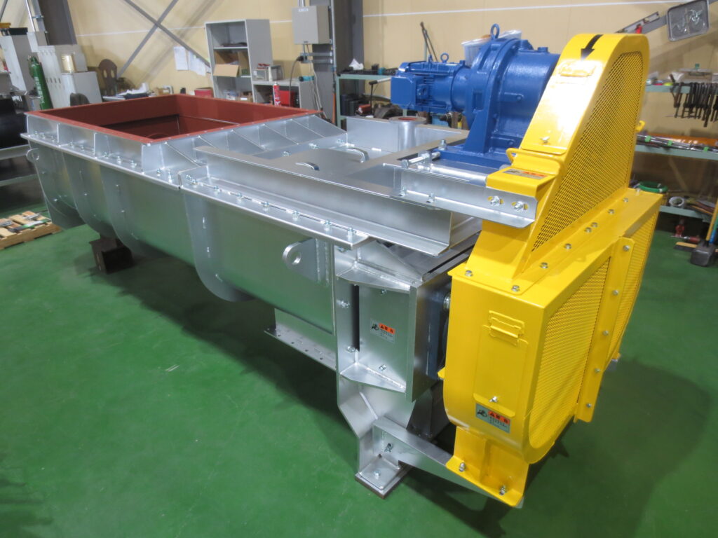 2軸のスクリューコンベヤです。後設機(ミキサー)へ、搬送物を定量的に送ることが可能です。