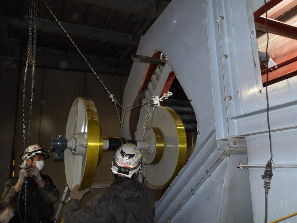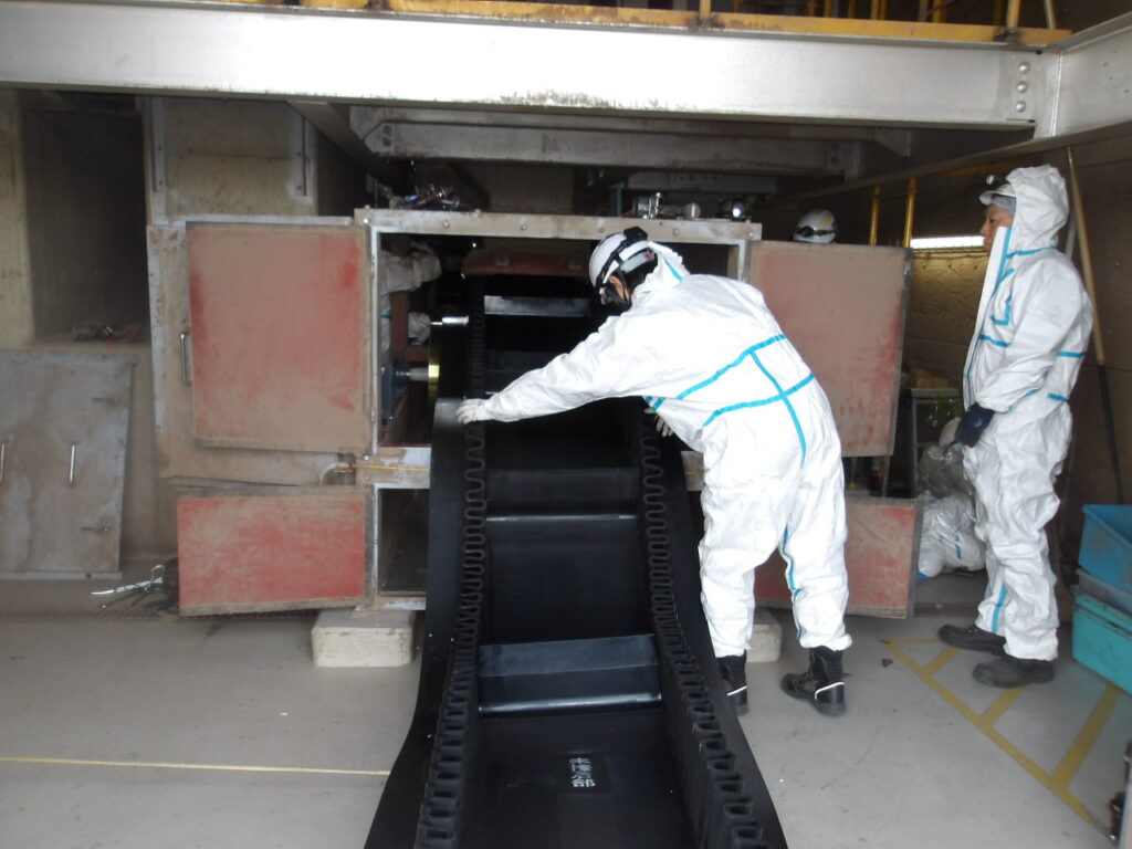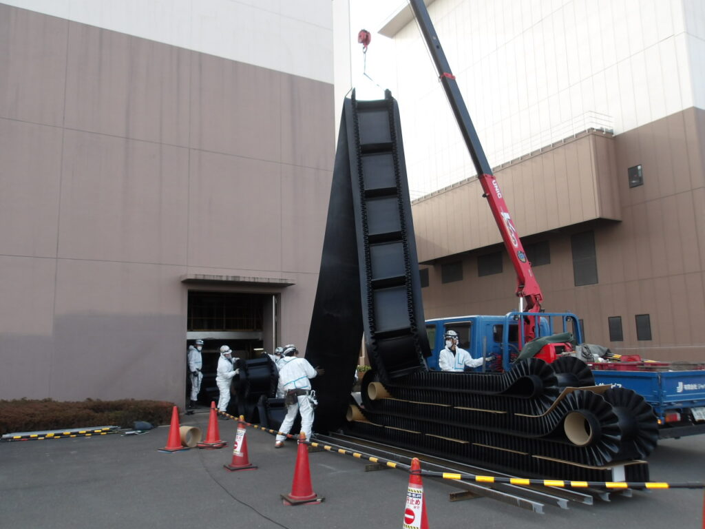 急傾斜コンベヤのベルト及びローラ・プーリ等の更新工事